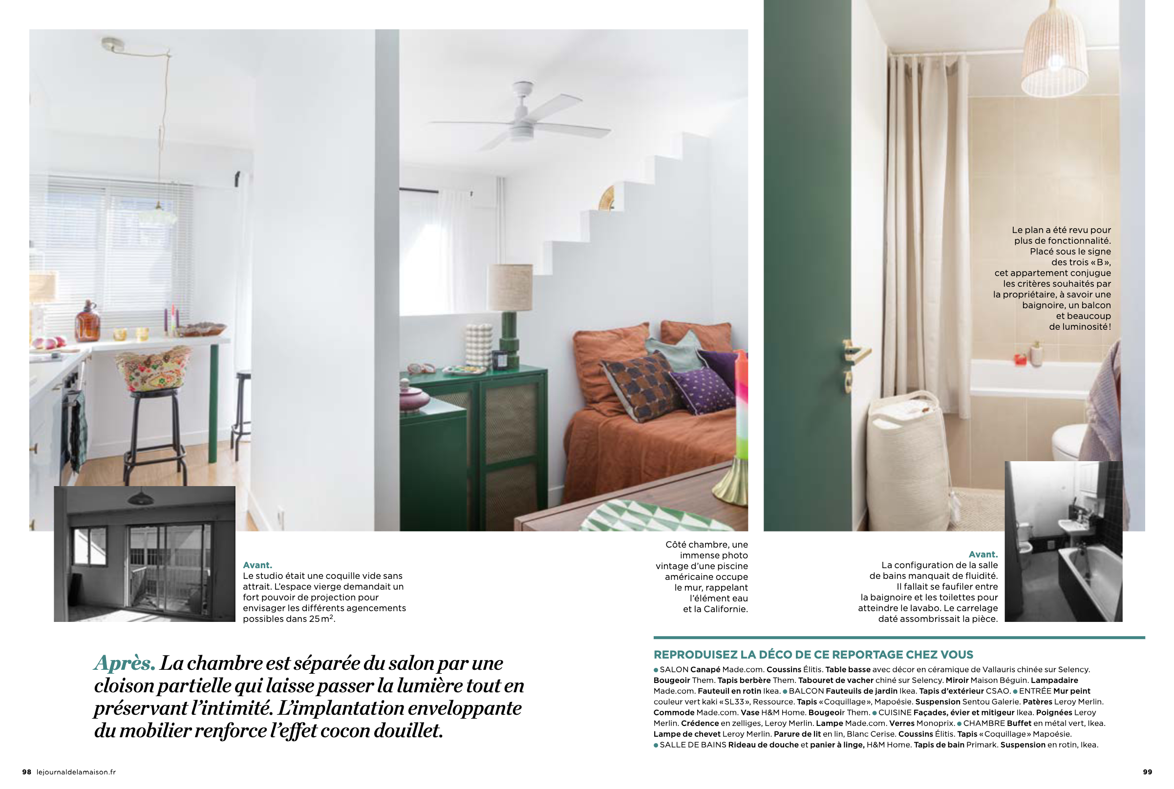 – Lifting : un studio de 25m2 ultra optimisé et coloré à l’ambiance californienne
